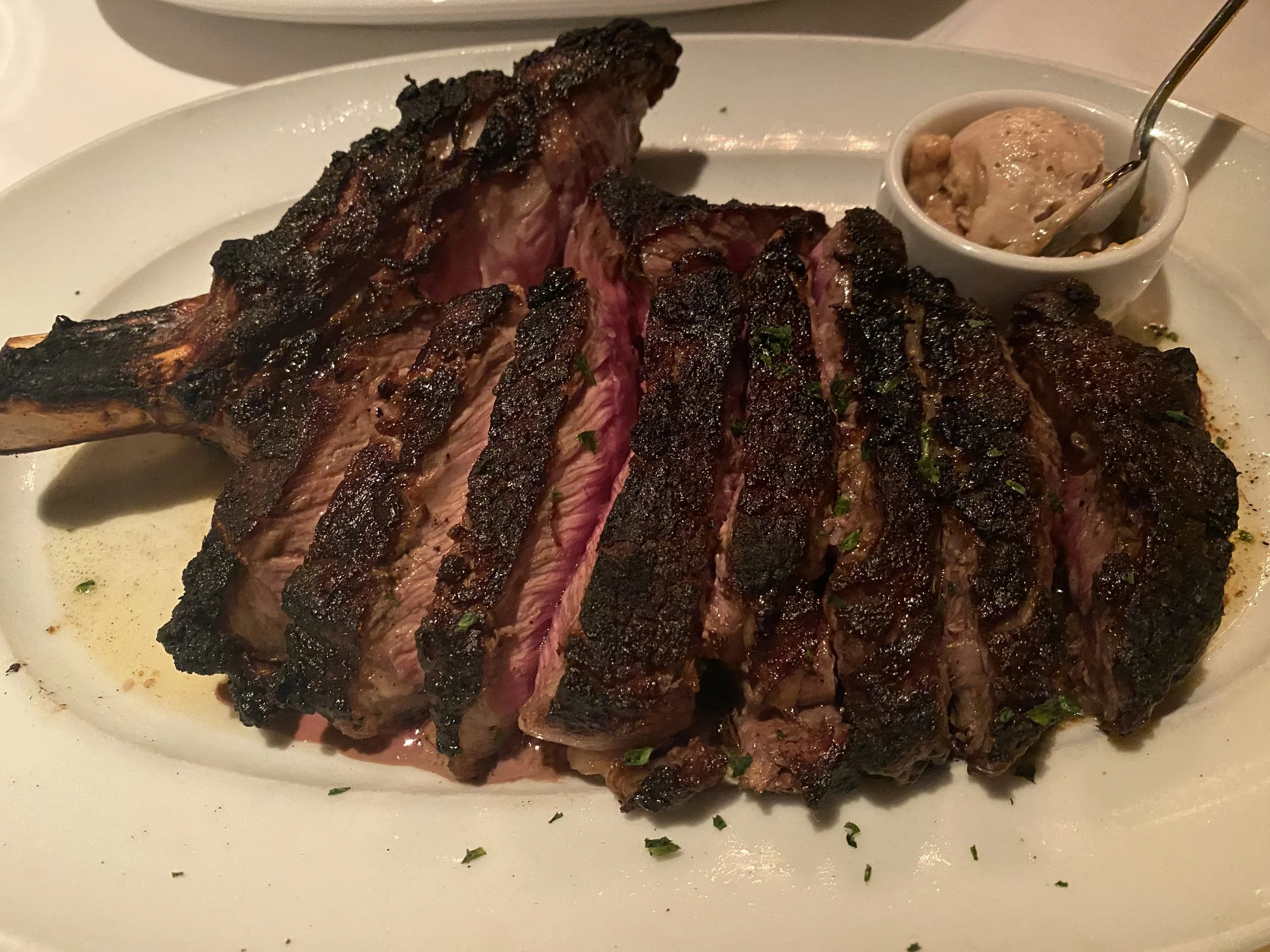We also split the bone in ribeye 33 ounce and added the waygu butter reduction to it. It honestly did not even need the butter reduction but hey we had to try it!